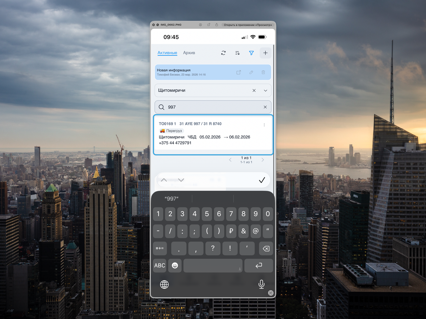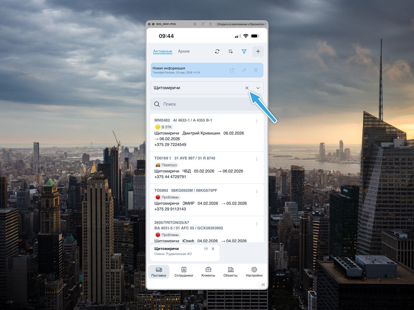 ПКМ-меню внутри карточки поставки в мобильной версии | |