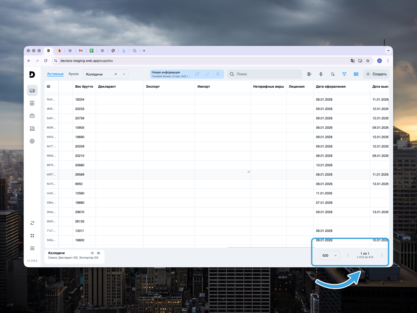 Элемент выбора количества отображаемых записей на странице открыт для всех ролей (ранее только для Офиса и Админов). Теперь любой пользователь может выбрать количество записей, отображаемых на странице (до 500).