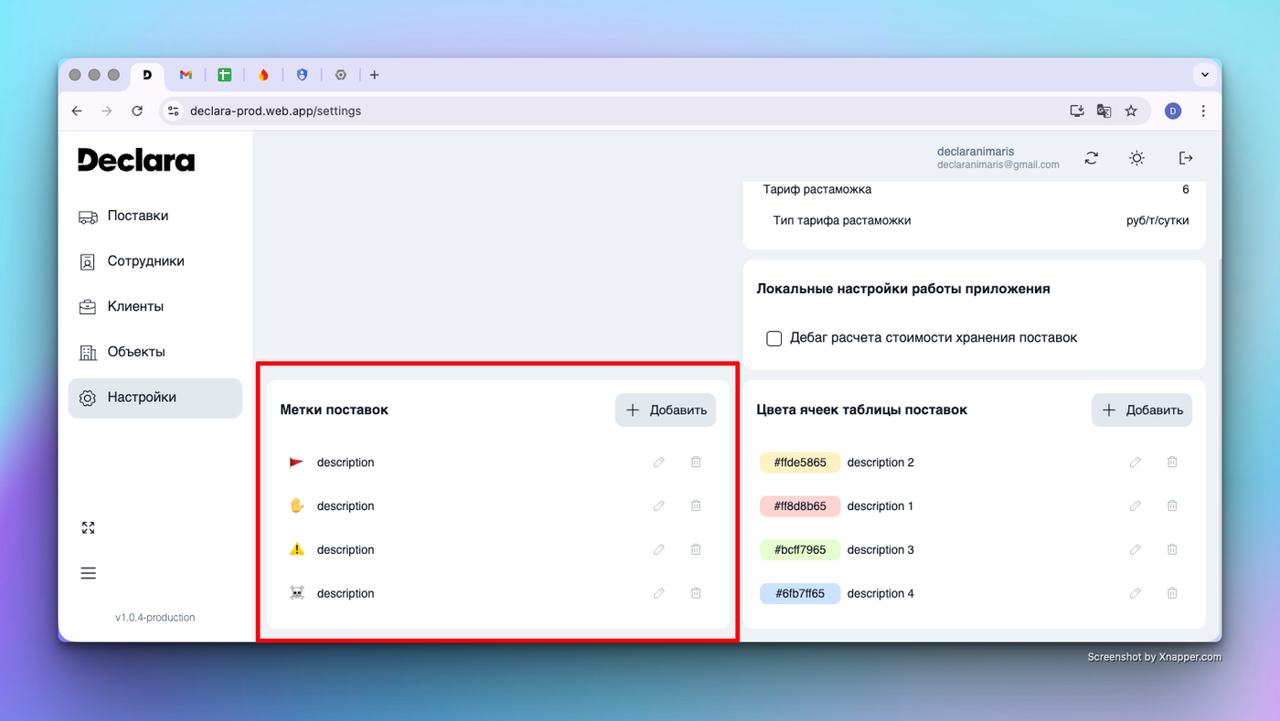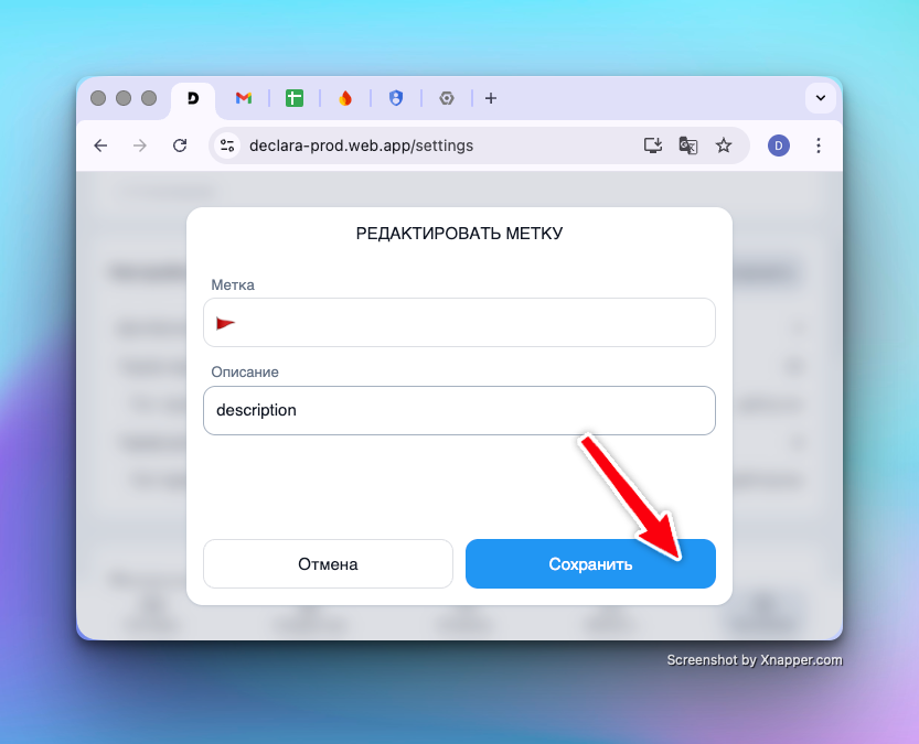 Управление списком доступных меток осуществляется в разделе «Настройки». Процесс создания максимально прост и аналогичен настройке цветовых схем.