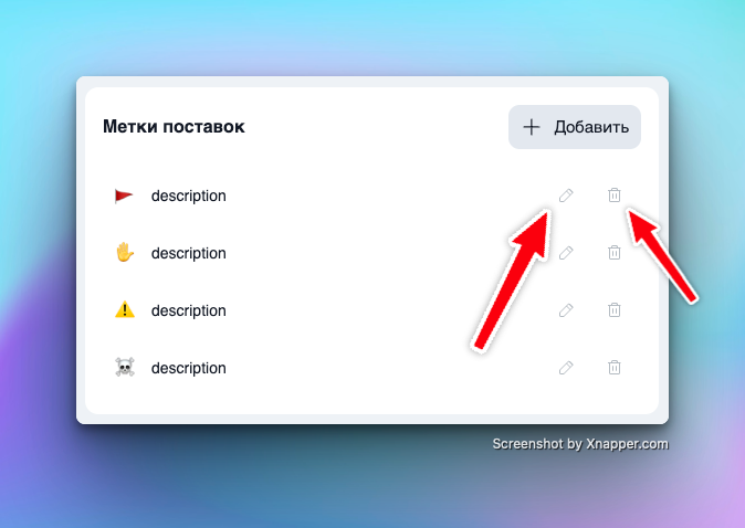 Множественный выбор: Для каждой отдельной поставки можно выбрать одну или сразу несколько меток.
