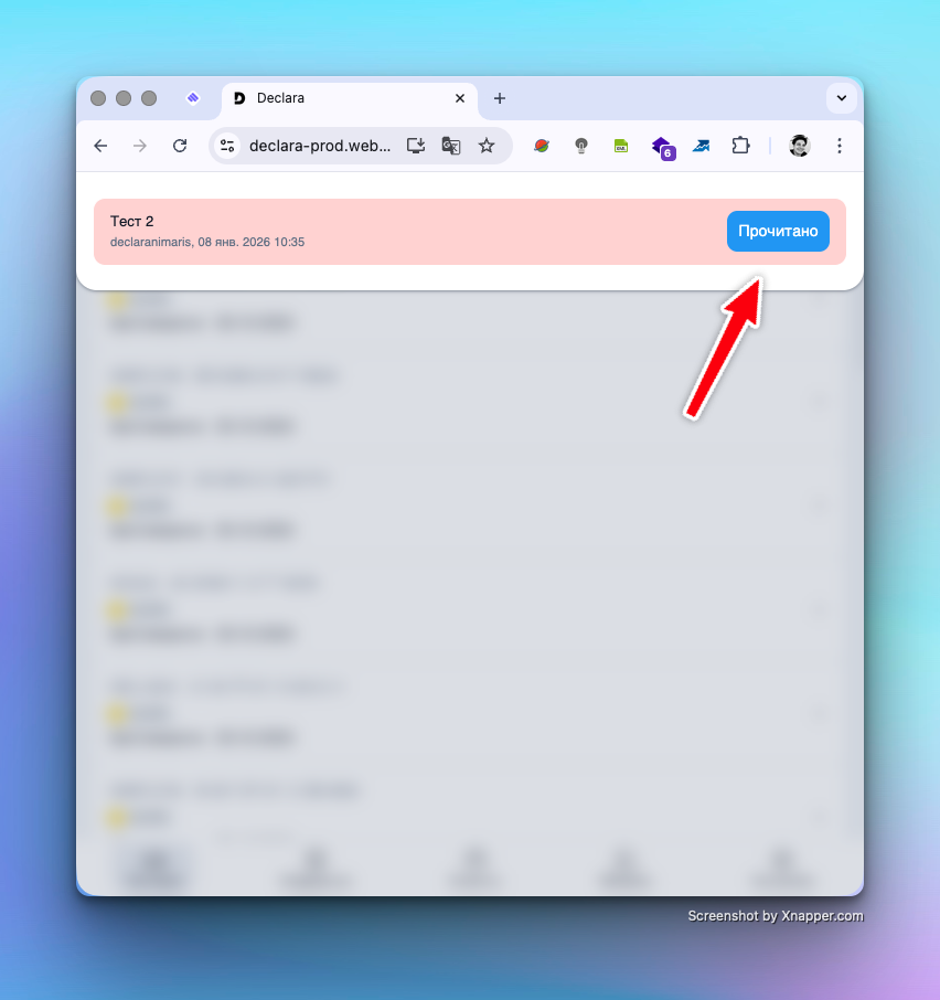Кнопка «Прочитано»: Для возврата к работе пользователь должен нажать синюю кнопку подтверждения. Это гарантирует, что каждый член команды ознакомился с текстом.