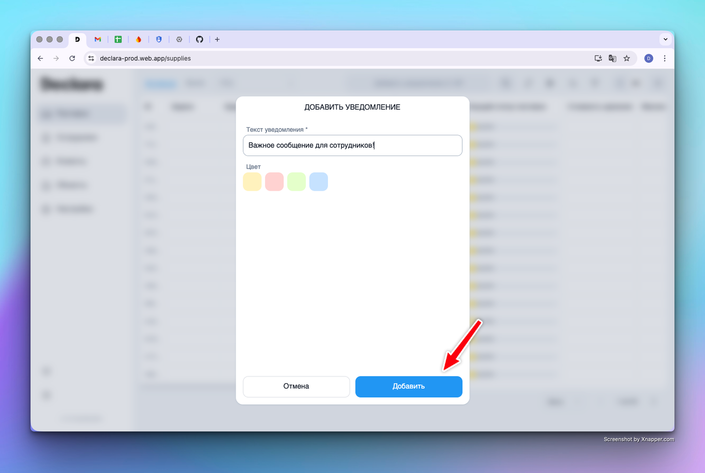 Публикация: После нажатия кнопки «Добавить» сообщение мгновенно появится у всех сотрудников.+