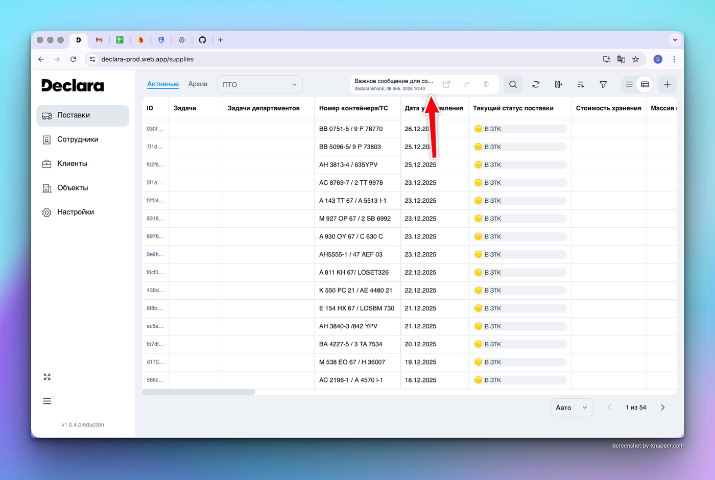VIP-сообщение — это инструмент для оперативного донесения важной информации до сотрудников. Оно отображается в виде яркого баннера над основной таблицей поставок и требует обязательного подтверждения прочтения.