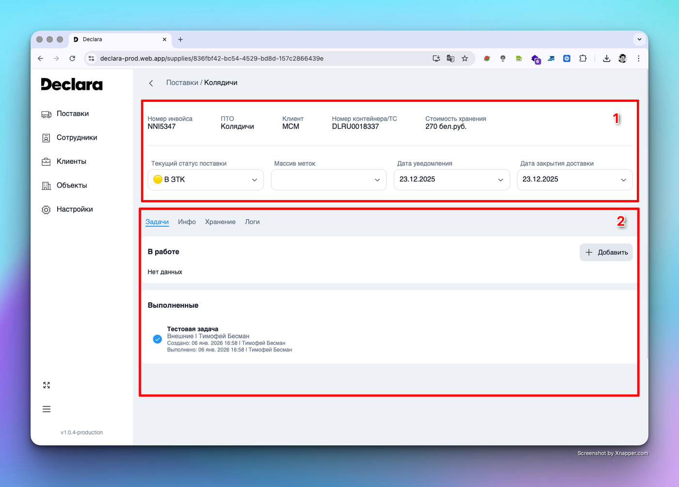 Эта статья описывает структуру и возможности экрана конкретной поставки. Здесь вы можете погрузиться в детали каждой поставки, управлять задачами и отслеживать историю изменений.