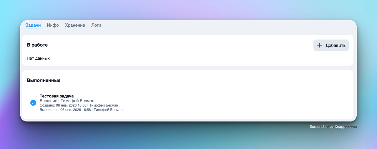 Вкладка «Задачи»