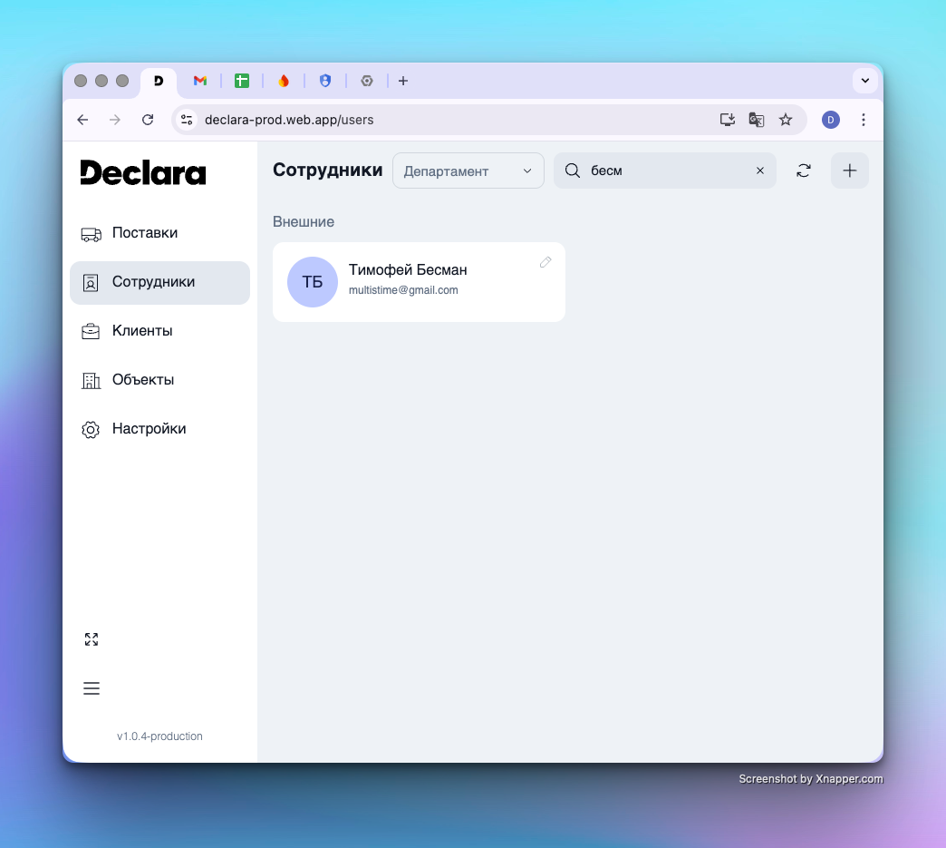В справочнике хранится реестр всех пользователей, которым предоставлен доступ к приложению. Для входа в систему используется указанная в карточке сотрудника электронная почта.