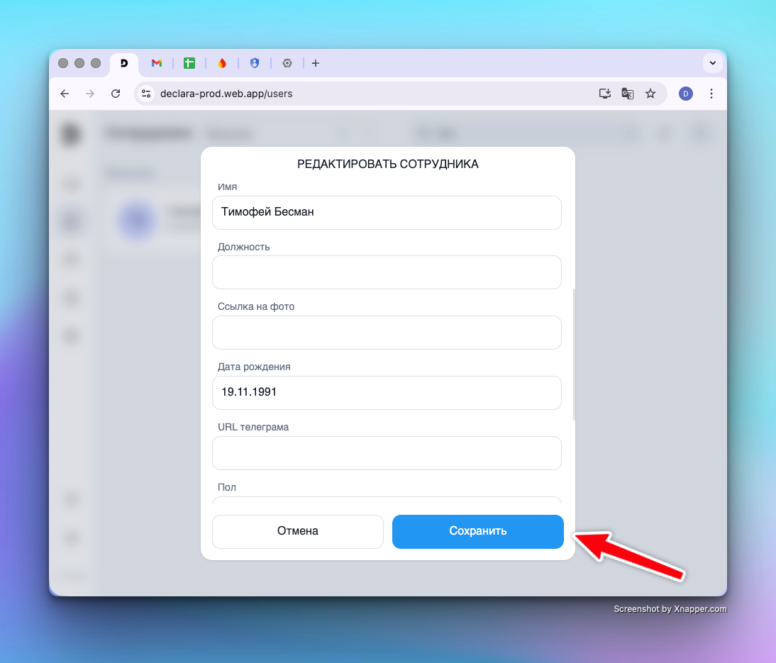 Внесите изменения в поля (например, если у сотрудника сменилась фамилия или должность).